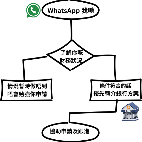 【免責聲明】本平台提供貸款產品資訊比較及轉介服務,會優先推薦銀行貸款方案。只有在客戶條件不合適時,才會推介合資格的持牌財務公司。本平台並非銀行或持牌放債人,亦不會向客戶收取任何費用。所有批核、利率及條款均以銀行或財務公司最終決定為準,平台不保證一定獲批。所有資訊僅供參考,並不構成任何理財或貸款建議。客戶資料只作聯絡及必要轉介用途,請勿提供一次性密碼或網銀登入資料。本服務僅適用於香港。